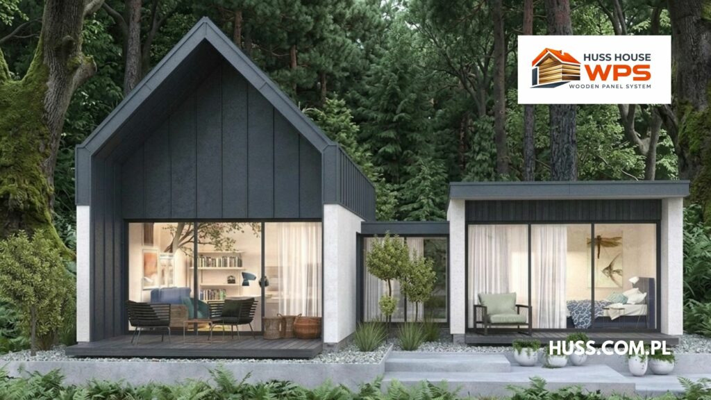 H1– w pełni funkcjonalny, estetyczny i ekonomiczny budynek, który powstał w oparciu o autorską technologię HUSS WPS, czyli Wooden Panel System. To inteligentne rozwiązanie dla osób ceniących sobie szybkość realizacji, niski koszt inwestycji oraz możliwość samodzielnego montażu.